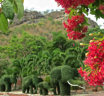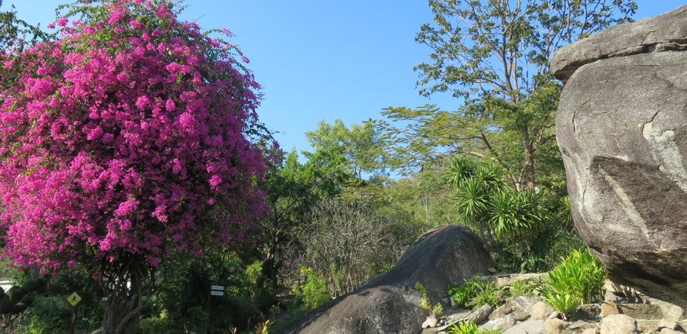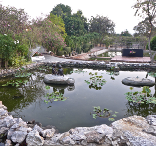 Nestling in 40 rai of undulating land on the lower slopes of Khao Hin Lek Fai (Flintstone Hill) National Park lies Chom Dong Villa and Garden, two kilometres to the west of Hua Hin town and 200 kilometres south of Bangkok on Petchkasem Highway.